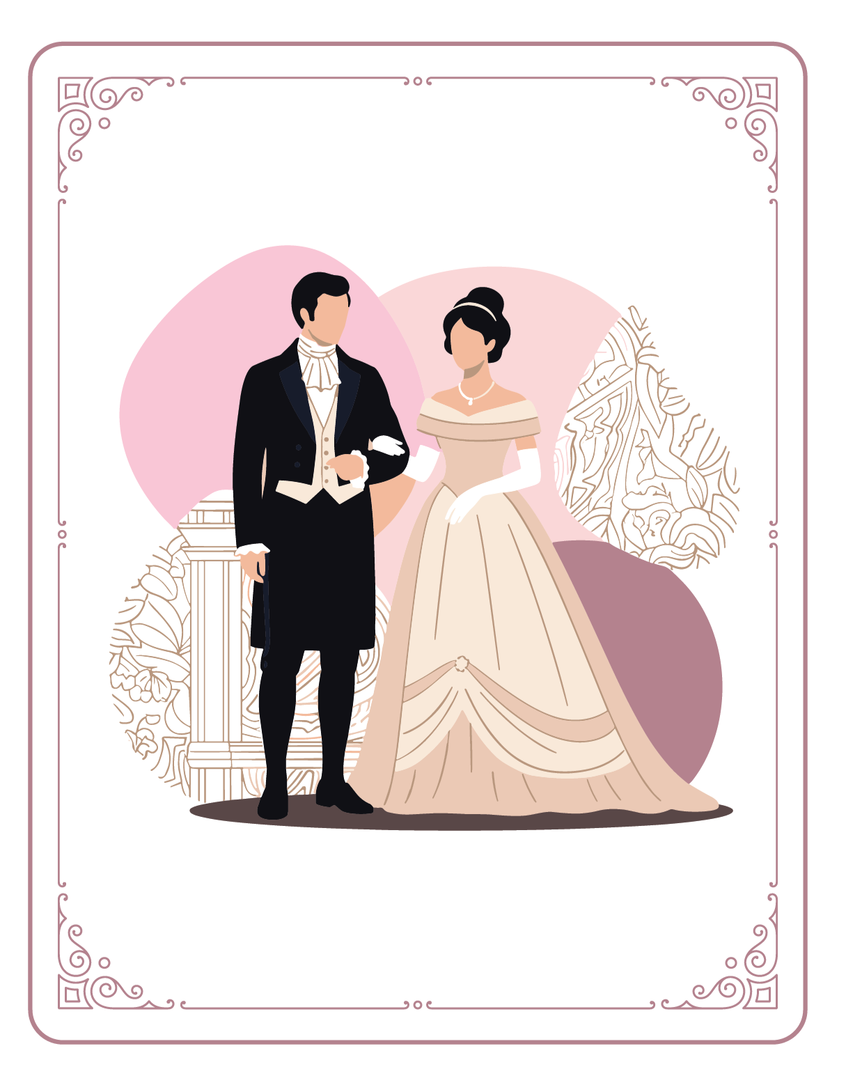 Please indulge us for our Bridgerton-inspired evening. We invite you to don the finest fashion befitting the Regency era. Ladies may favor elegant gowns of flowing silhouette, delightfully complemented by long gloves for an added touch of refinement and romance. Gentlemen are encouraged to wear tailored coats and waistcoats, styled with classic charm.